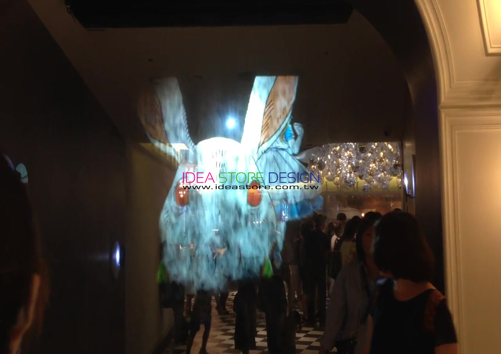 利用的微粒霧平面特性作為影像載體,再將特製的流暢生動的媒流體投射在該載體上便可以在空間中形成虛幻立體的影像,形成一種三位元空間立體圖像,給人一種新的立體視覺享受。人可以在這種虛幻影像中隨意穿梭,仿彿真人可進入畫面的虛幻效果,為一種獨特的展示媒體,改變了傳統不能穿透的特效投影。